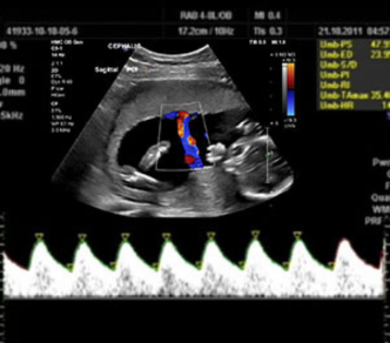 This technique measures blood flow in the umbilical cord, fetal heart, and other blood vessels. It is used to evaluate the health of the placenta and assess potential complications such as fetal growth restriction.